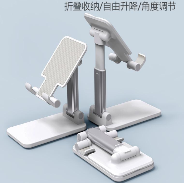 折叠小巧可随身携带随时享用,角度自由调节,高度自由伸缩,稳固不晃动,预留充电口可插充电线,充电追剧两不误,硅胶保护,防滑,不刮花手机