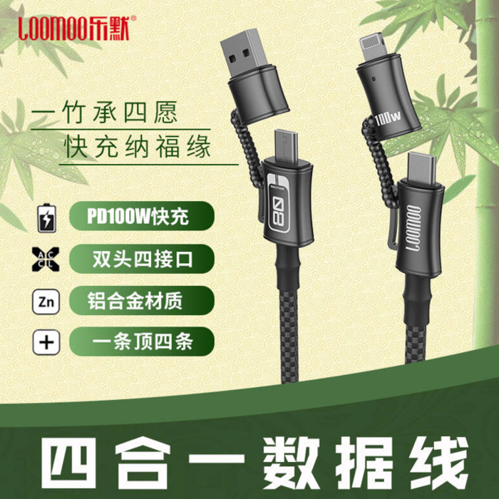 乐默竹节四合一超级快充数据线